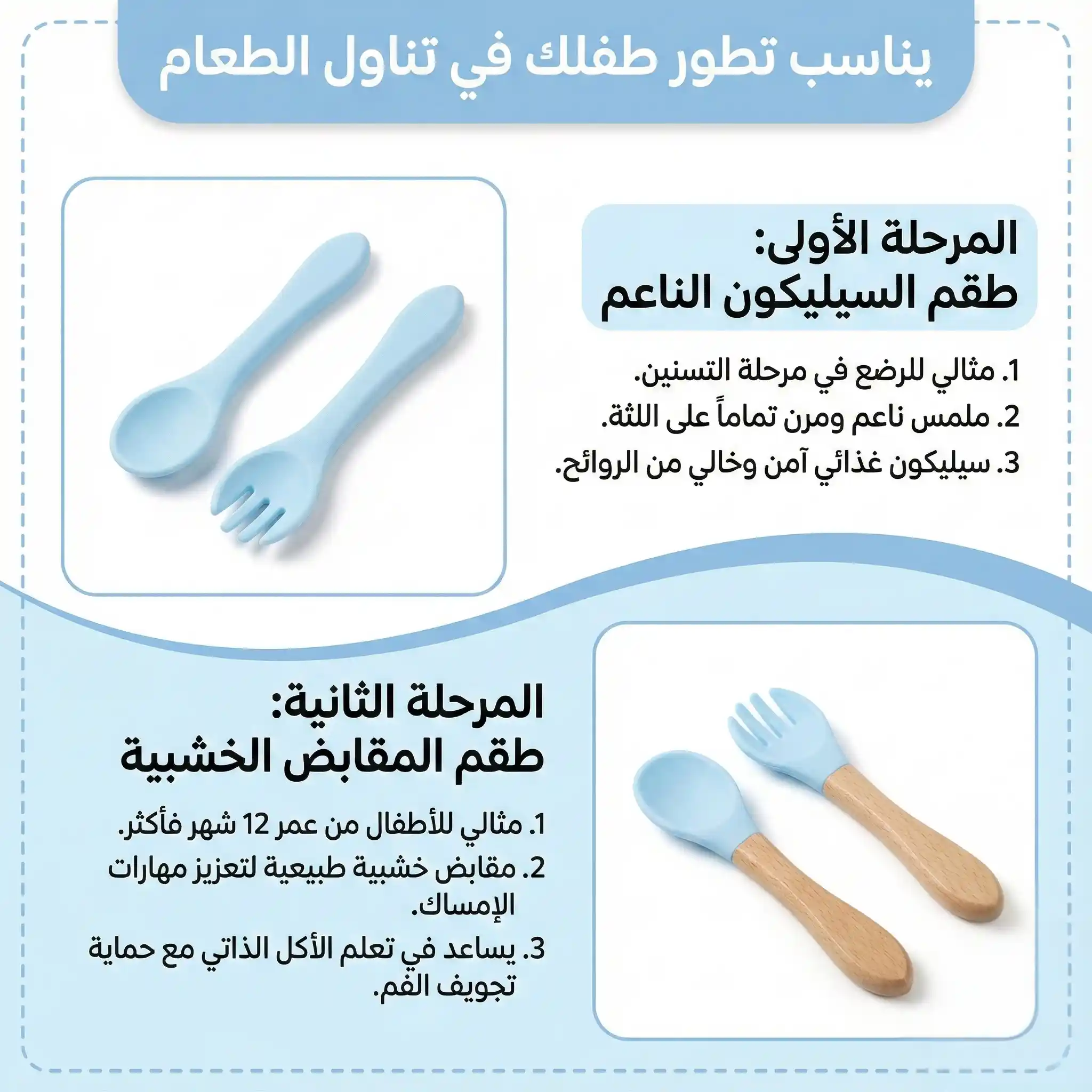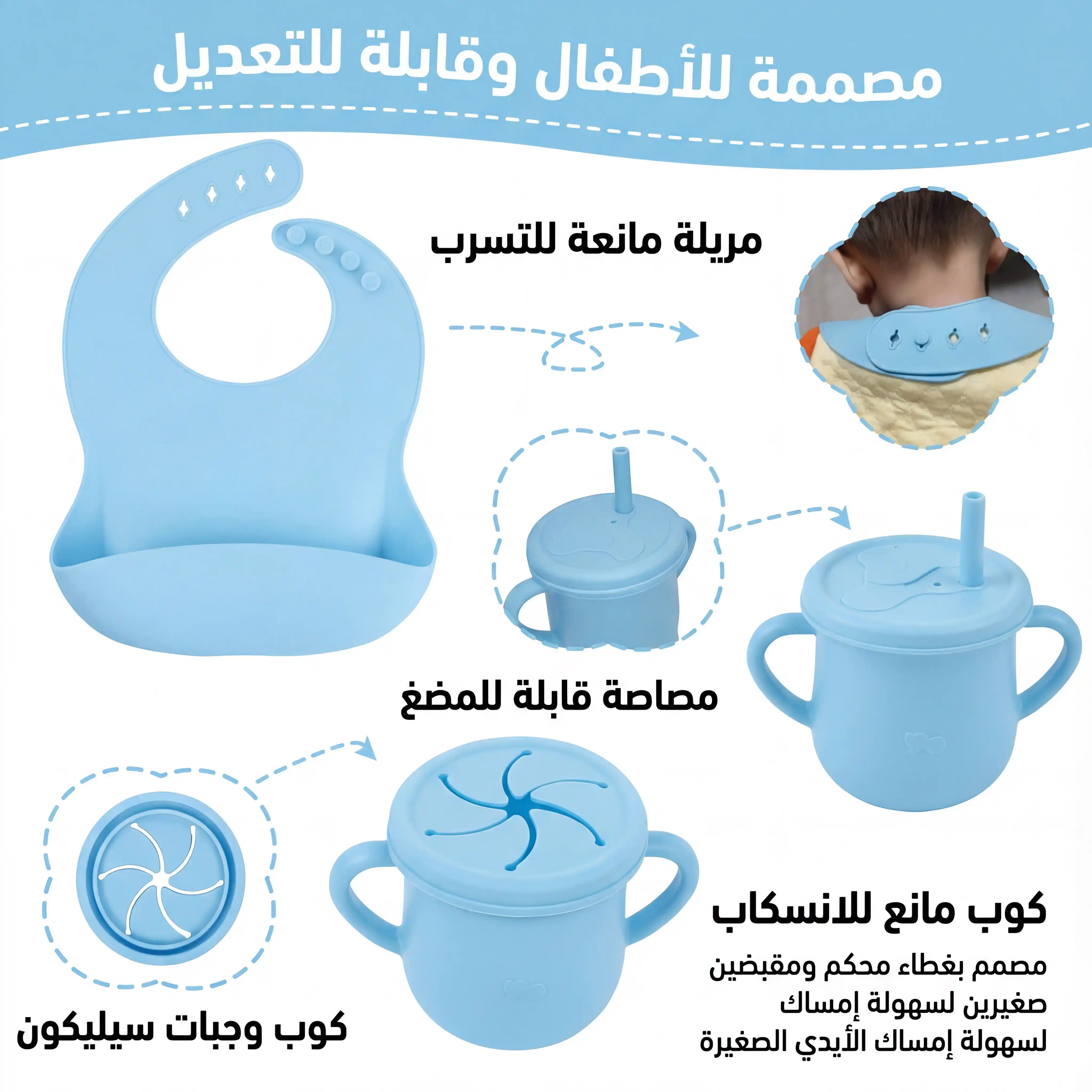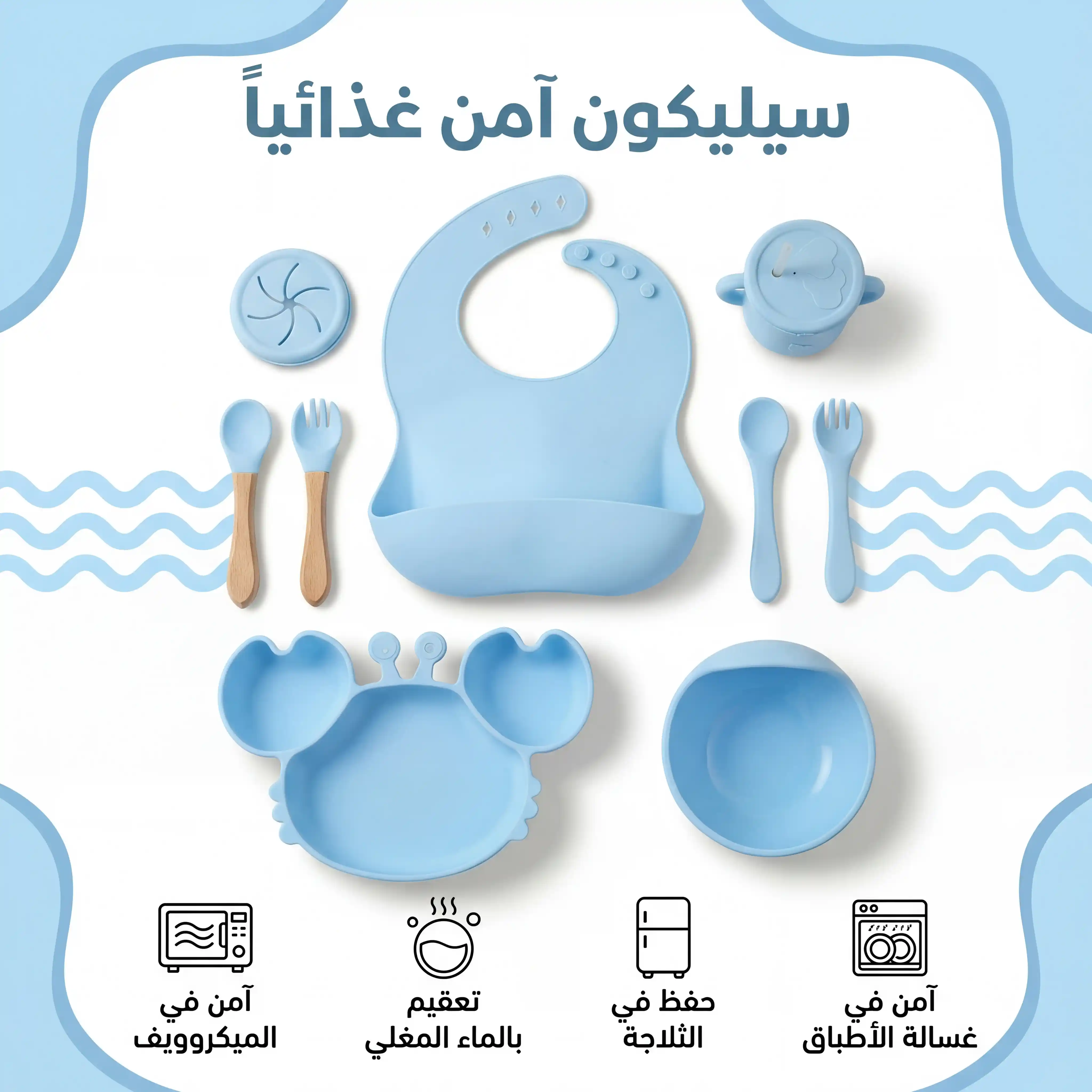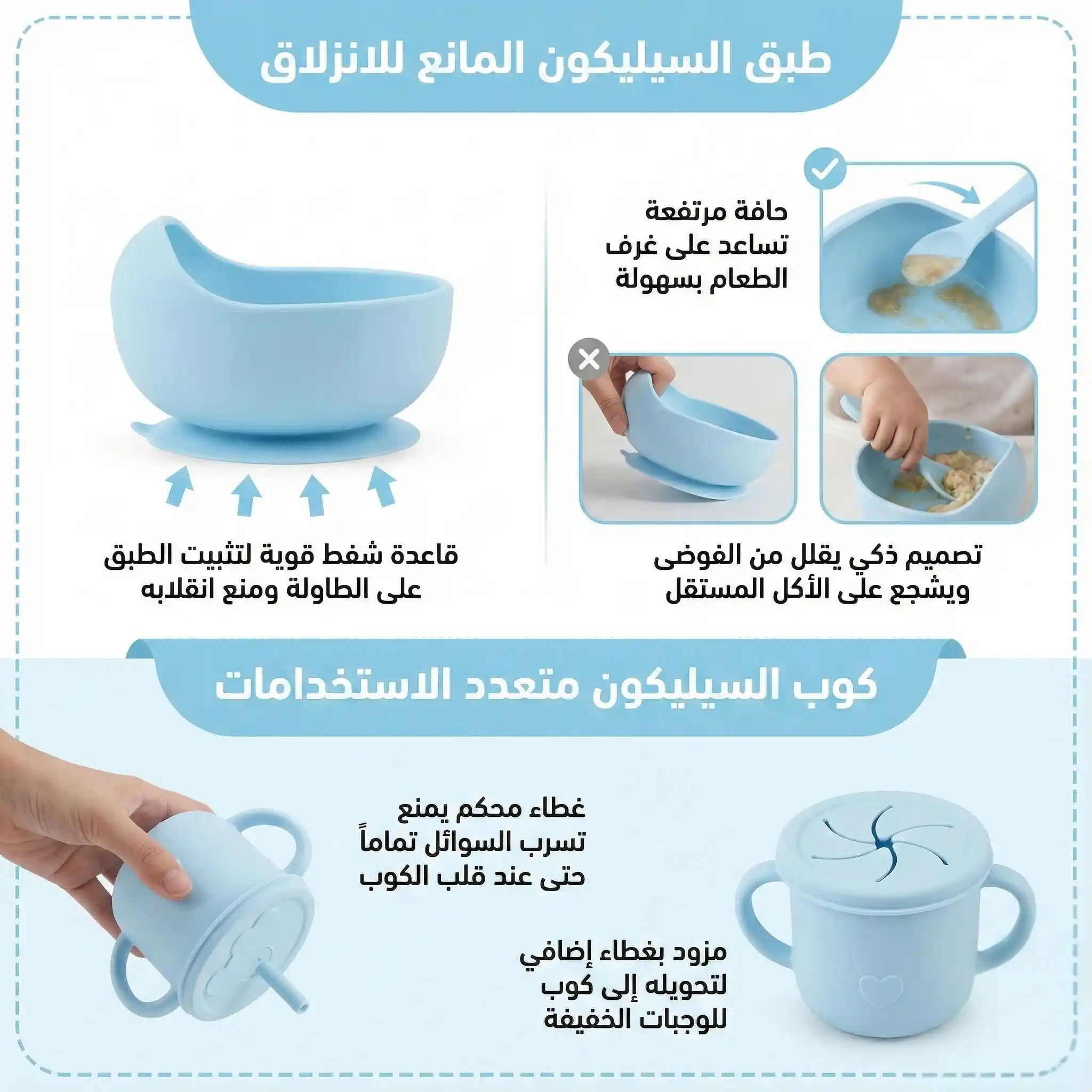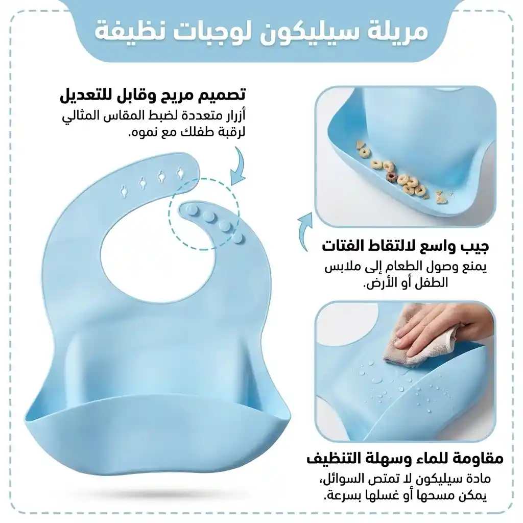 كل اللي محتاجه طفلك في مرحلة الفطام في طقم واحد 👶🍽️ طبق شفط ثابت، كوب تدريب، مريلة سيليكون وأدوات أكل ناعمة تساعده يعتمد على نفسه بكل أمان.