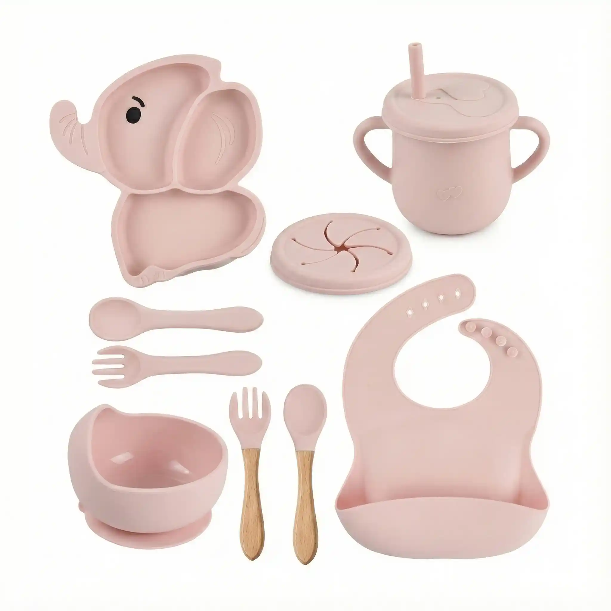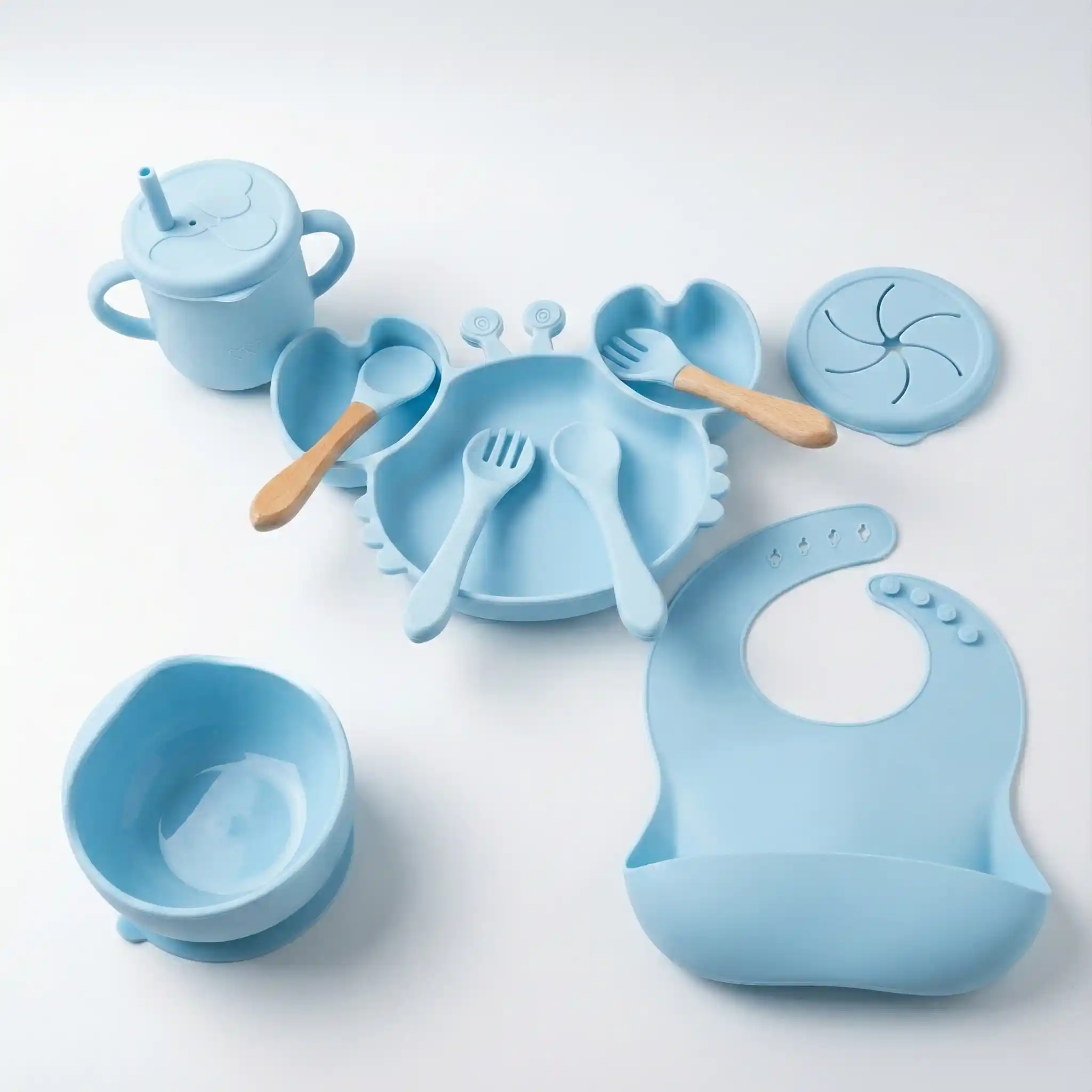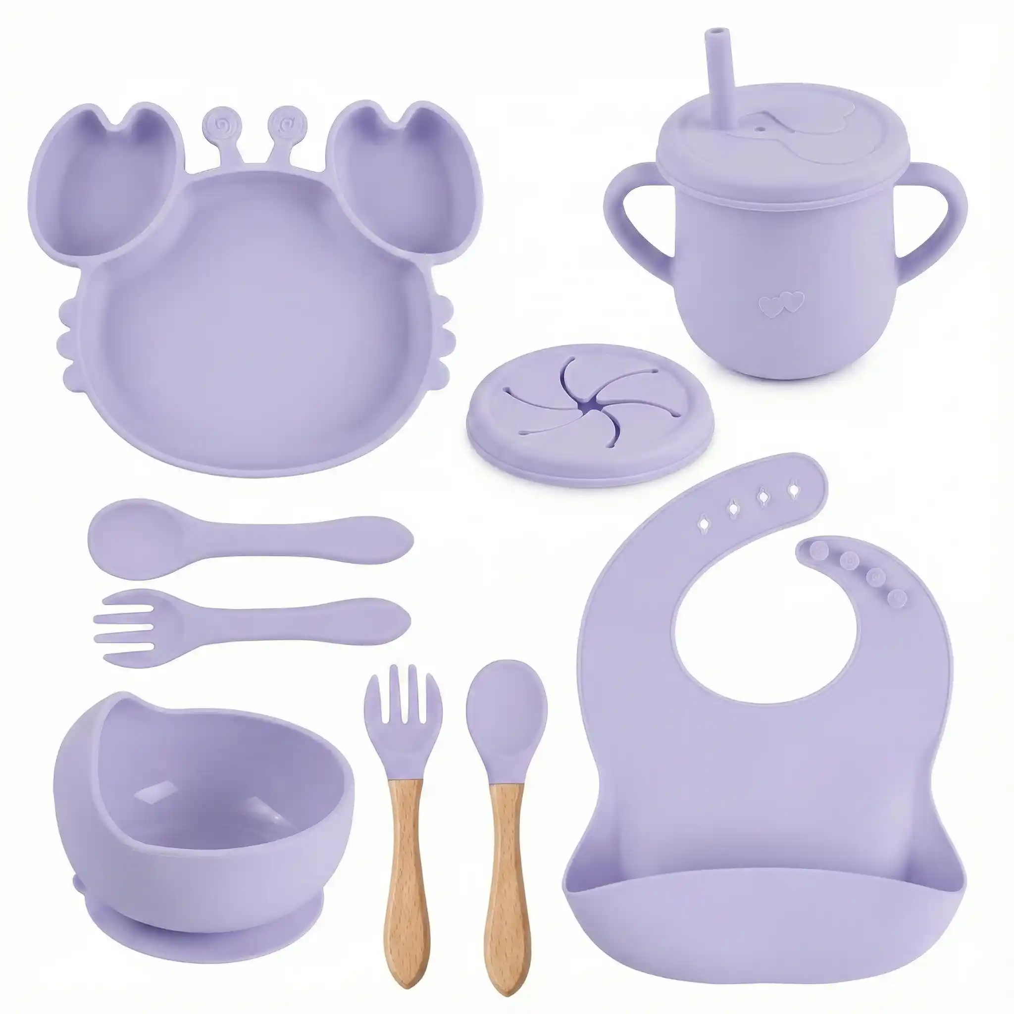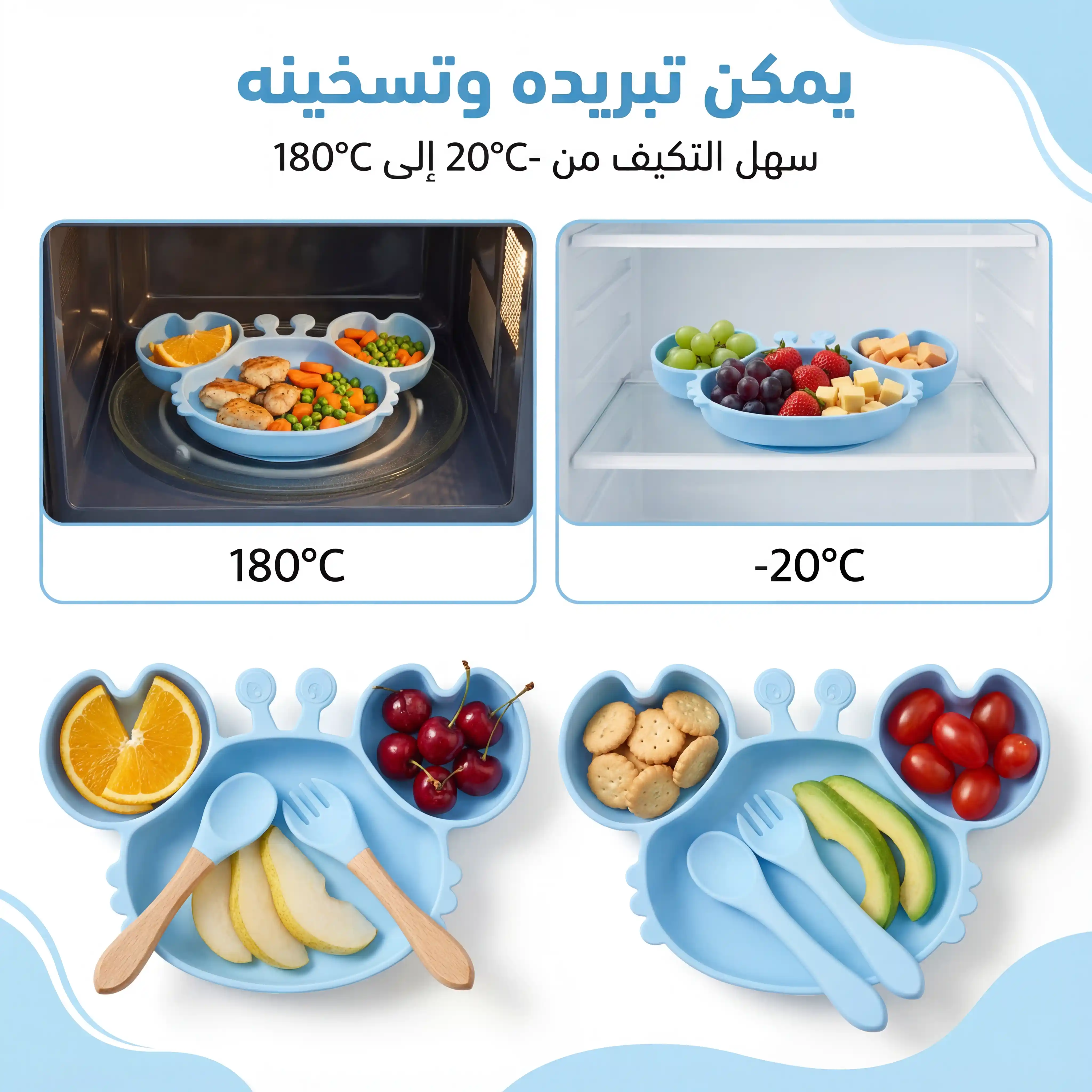 كل اللي محتاجه طفلك في مرحلة الفطام في طقم واحد 👶🍽️ طبق شفط ثابت، كوب تدريب، مريلة سيليكون وأدوات أكل ناعمة تساعده يعتمد على نفسه بكل أمان.