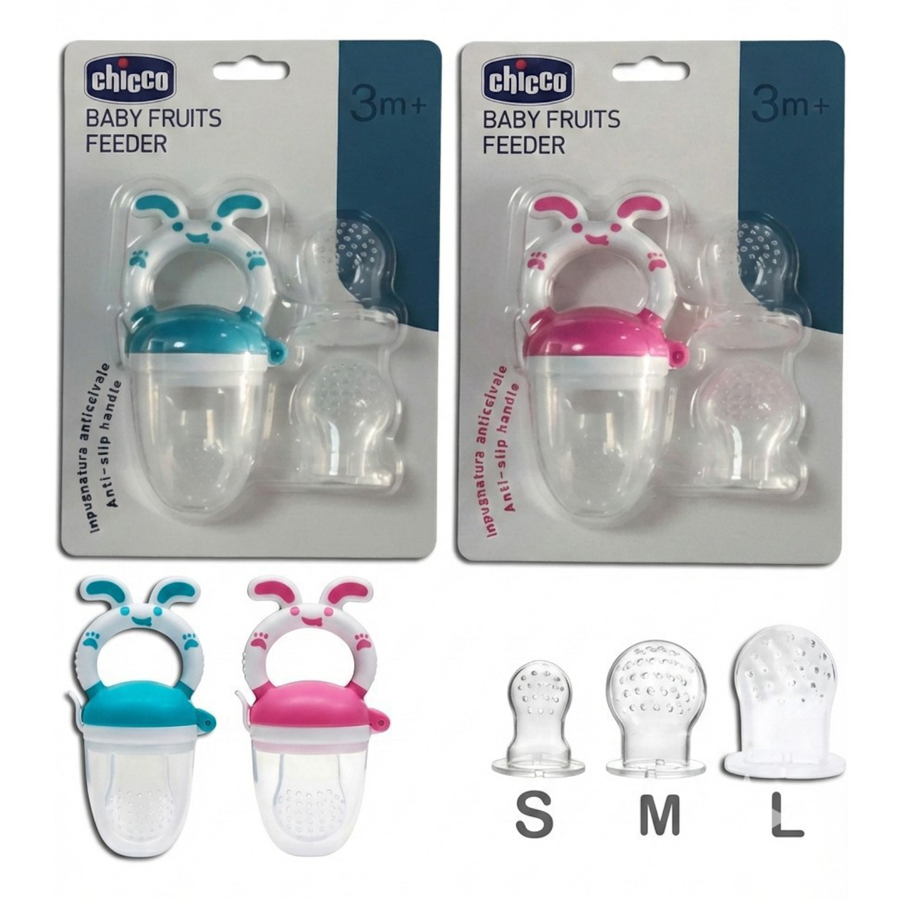 عضاضة فواكه شيكو أرنب (3 في 1) مع 3 مقاسات سيليكون و2 غيار مجاناً. تصميم آمن ومقبض مضاد للانزلاق لبدء مرحلة الطعام بذكاء من عمر 3 أشهر. متوفرة في رغد كيدز.