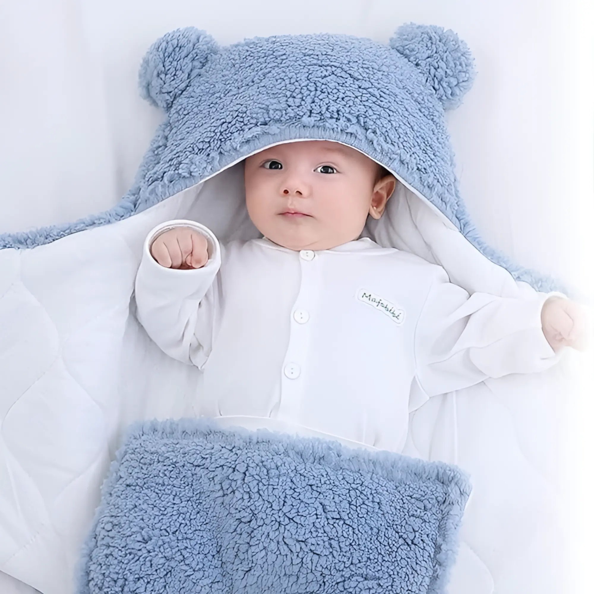 خامة ناعمة جدًا مع كابيشو دب لطيف لحماية الرأس من البرد، وتصميم قابل للتعديل ليناسب البيبي حتى سنتين.